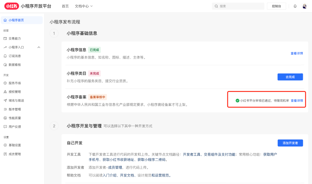 - 新增小程序:小红书已于近期正式开放备案入口,新增小程序需先完成备案后再进行发布和上架。