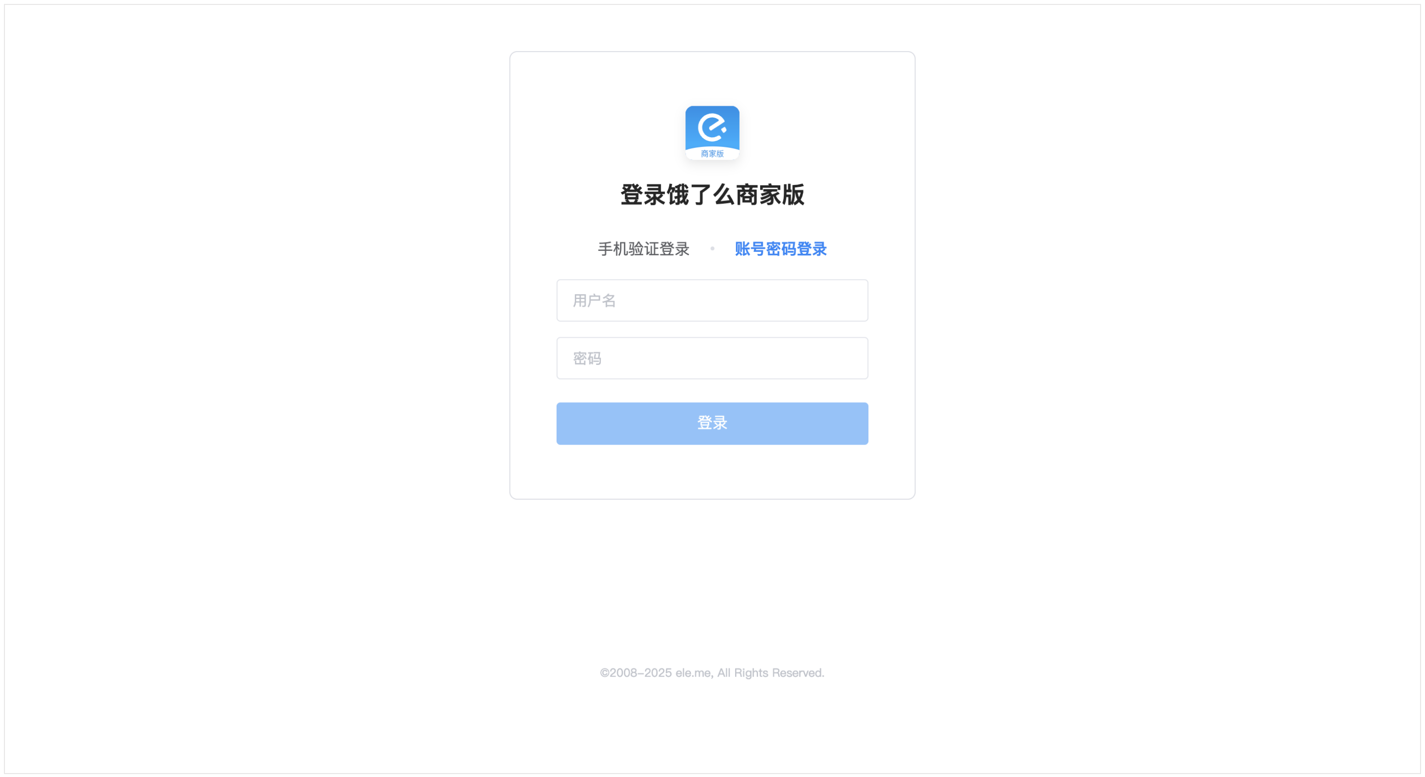 2、系统将跳转至饿了么授权页面,使用饿了么商家平台的账号密码登录授权。