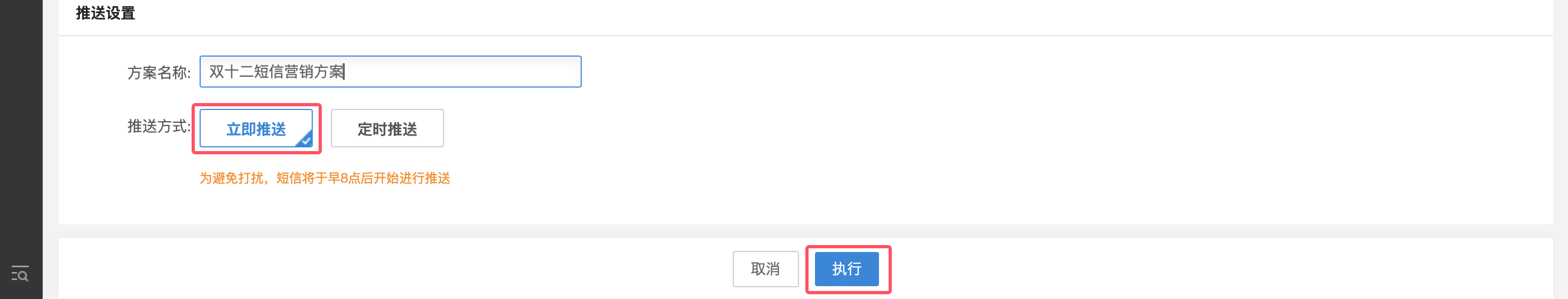 ③ 选择推送方式,完成计划制定。