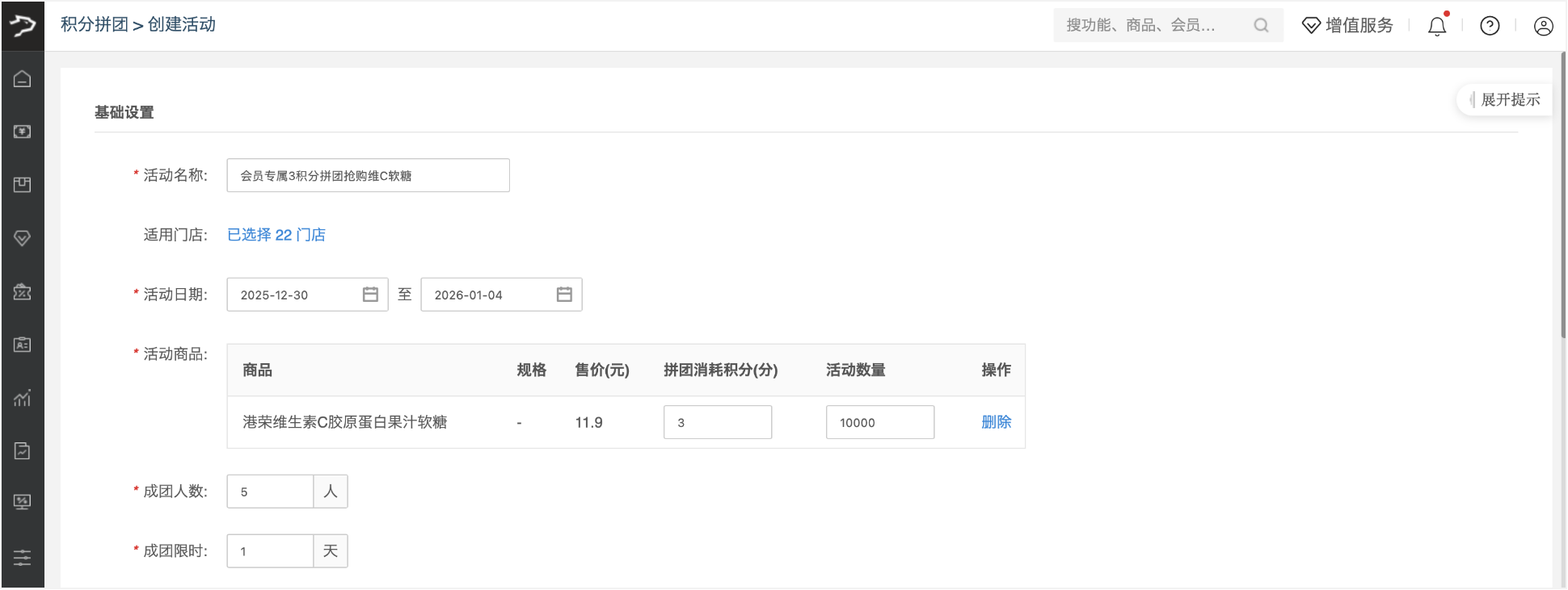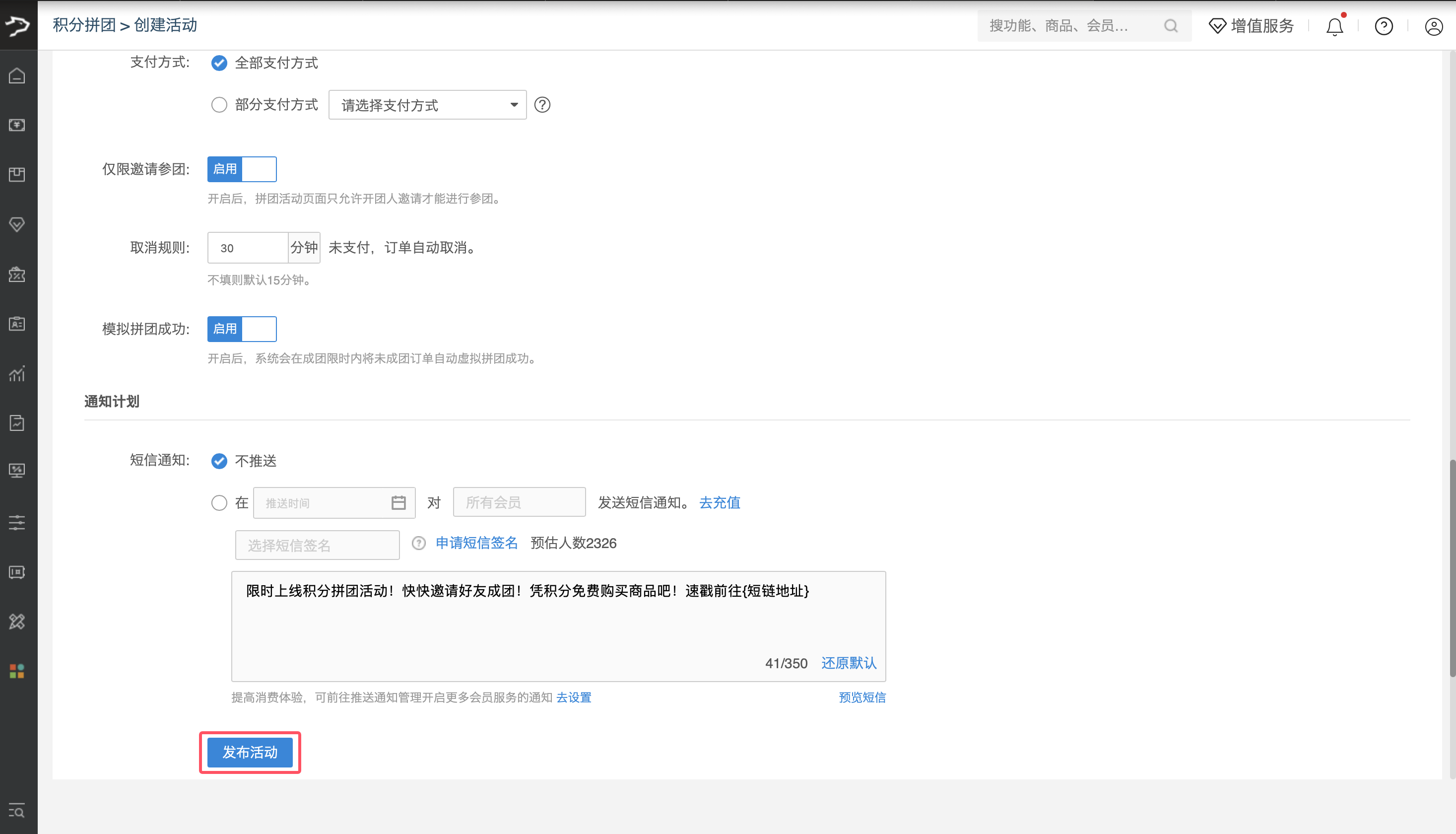 创建积分拼团活动