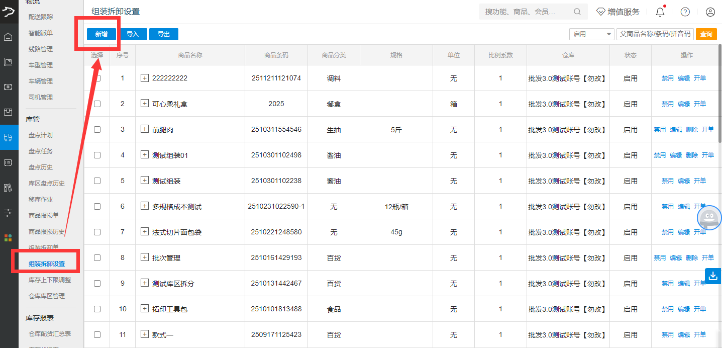 组装拆卸功能(批发商贸V3)