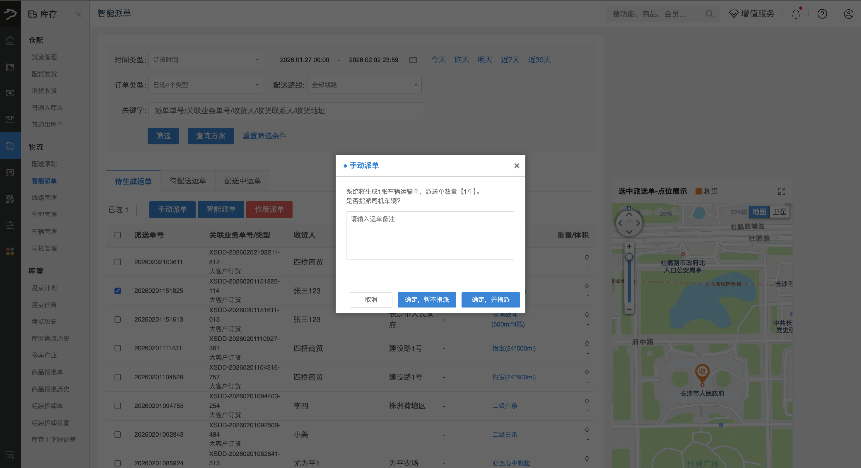 • 确定,暂不指派:仅生成运单,不立即关联司机和车辆。