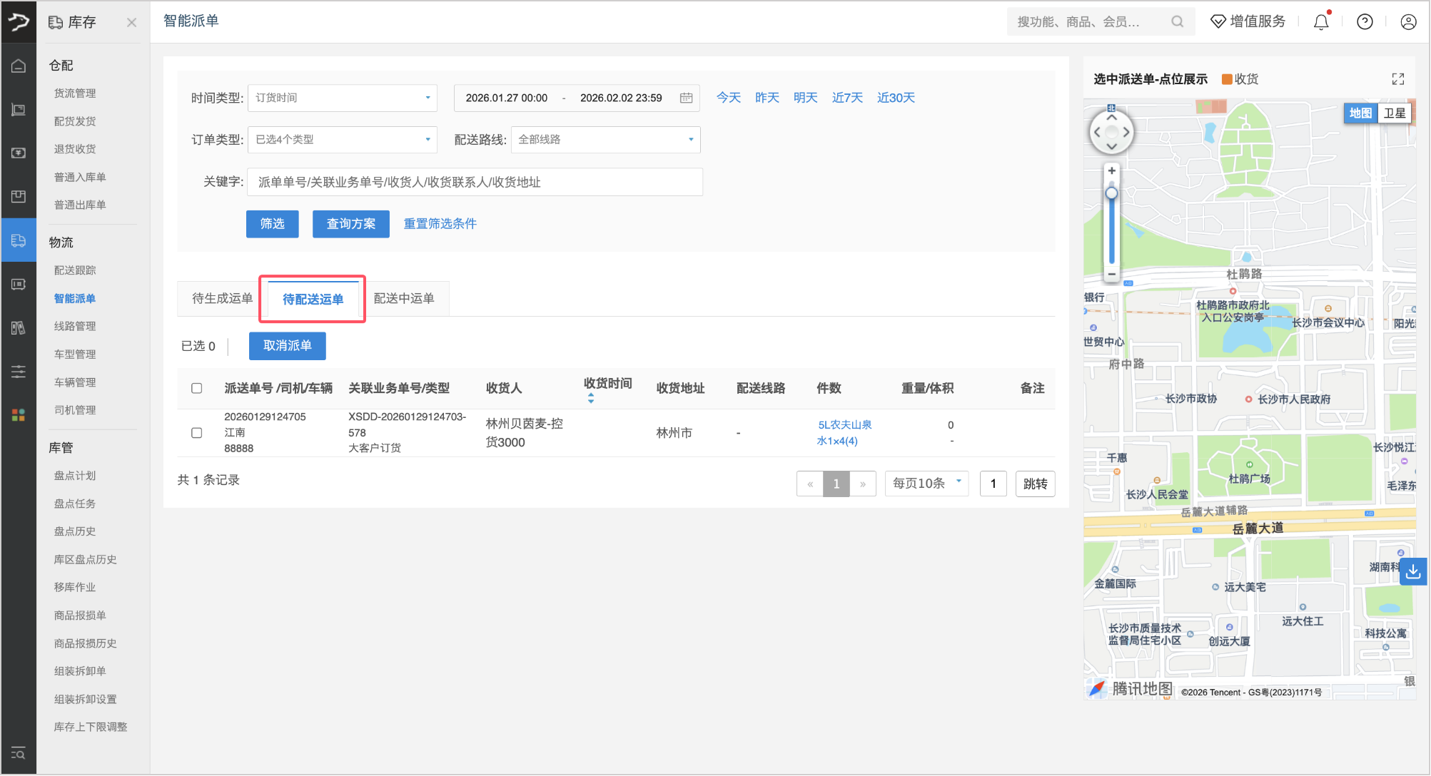 3、自动生成的运输单,可在「待配送运单」标签页中查看。