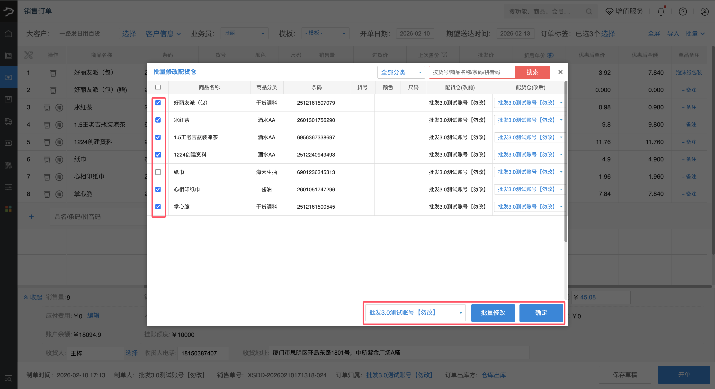 批量改仓:多仓场景下支持对选择商品快速调整出货仓。