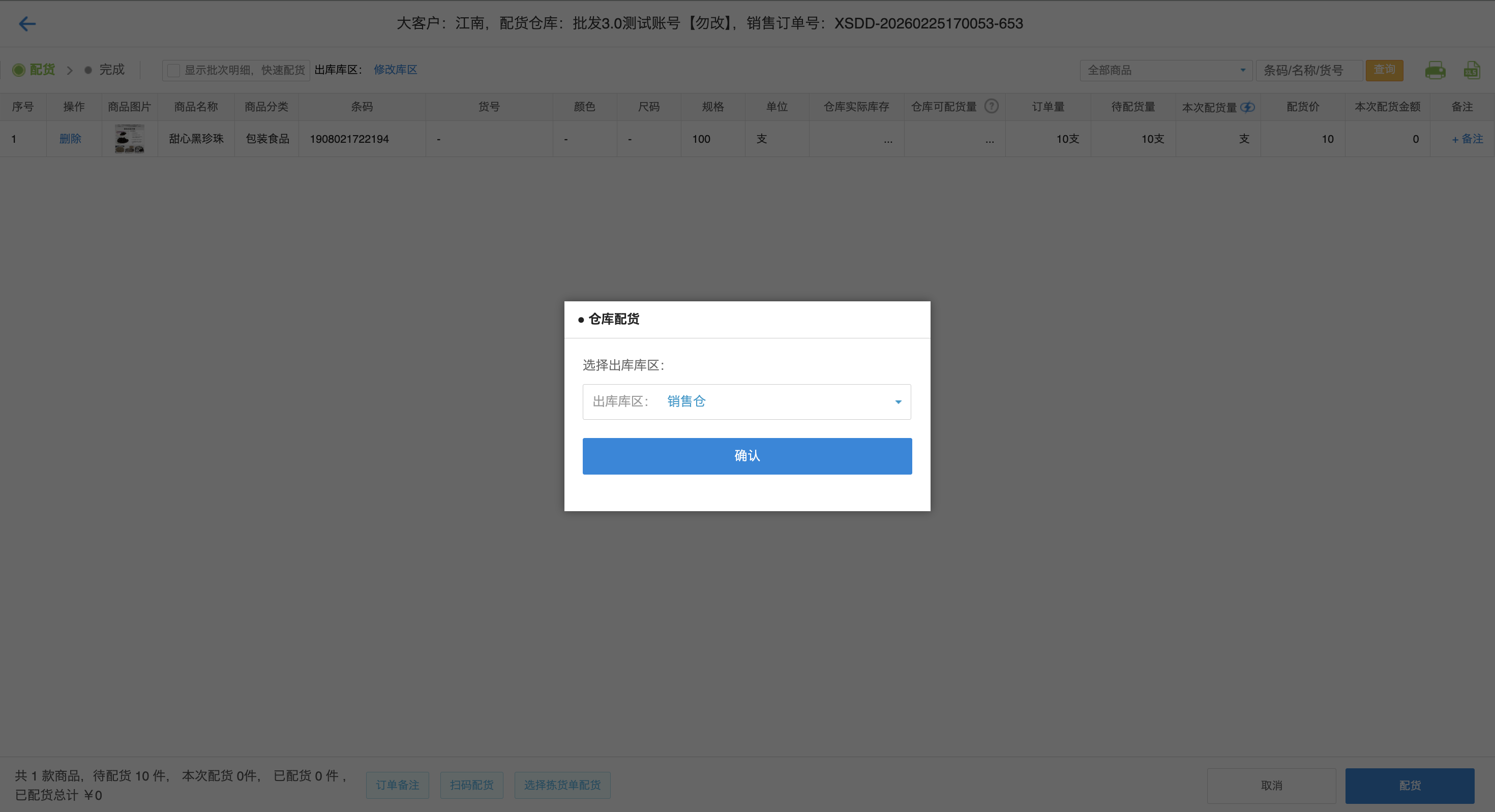 对于“待配货”状态的订单,点击【配货】可进行出库配货操作。