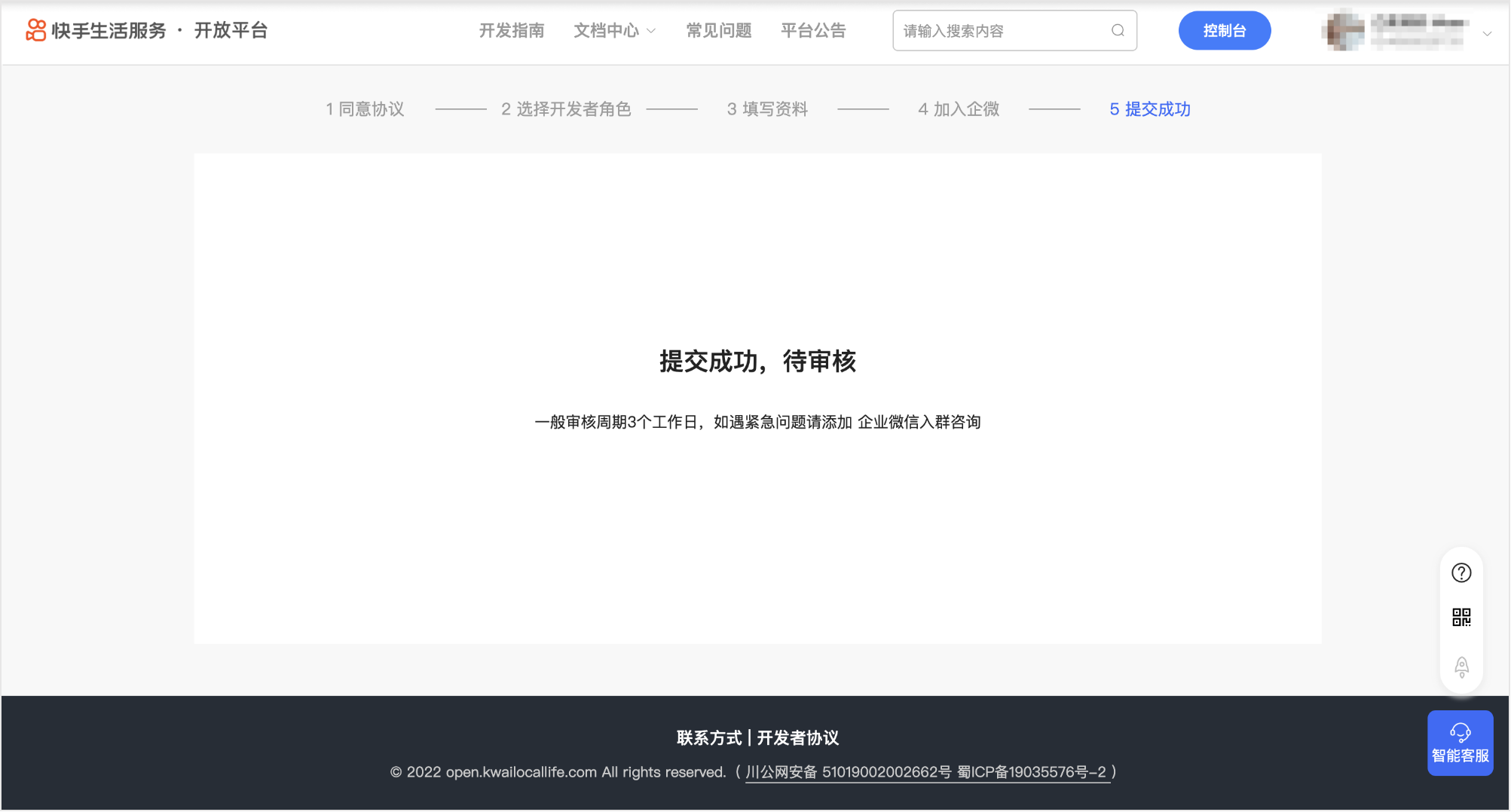 开发者资质审核通过后,重新登录快手账号,即可进入开放平台。