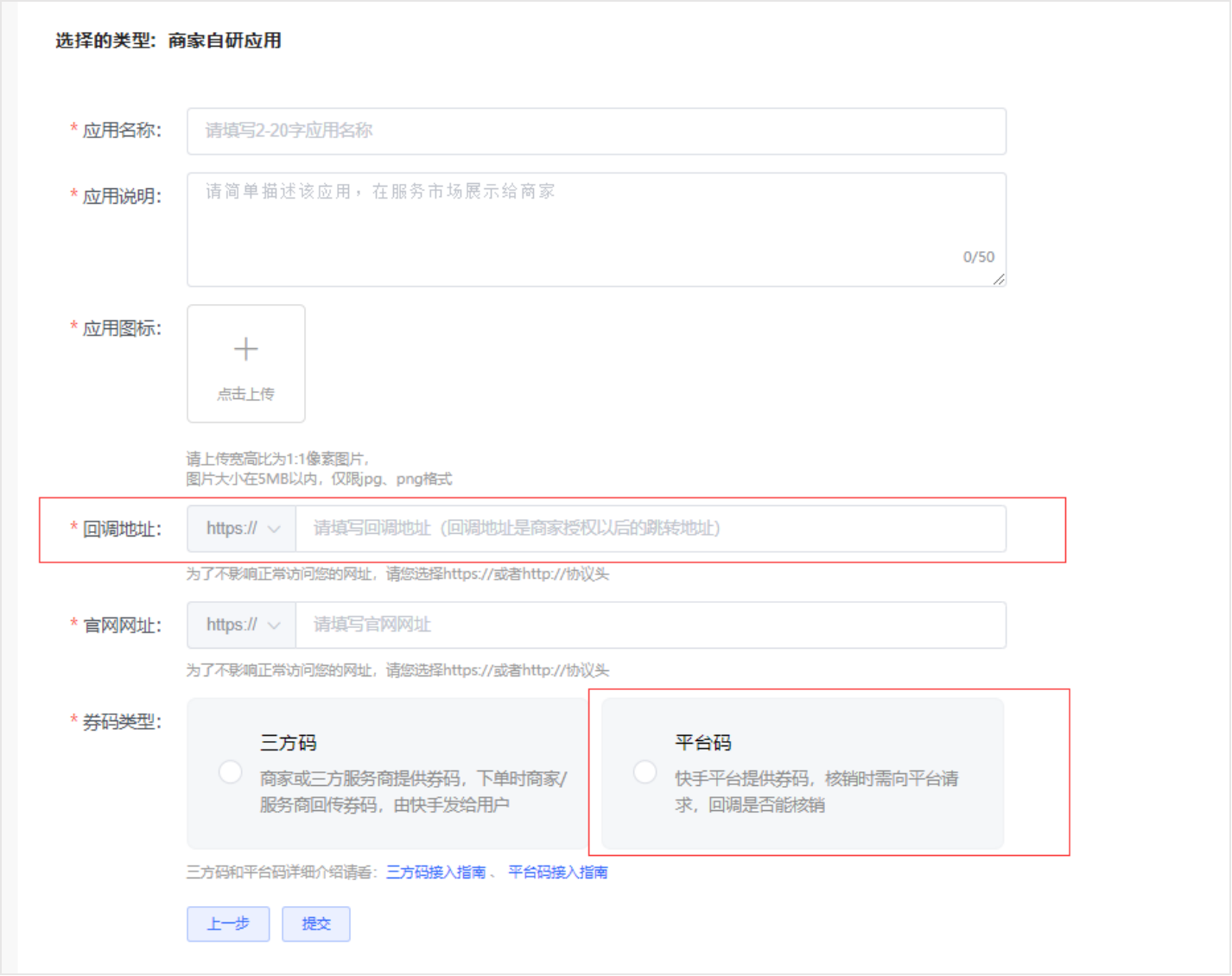 • 券码类型:选择「平台码」