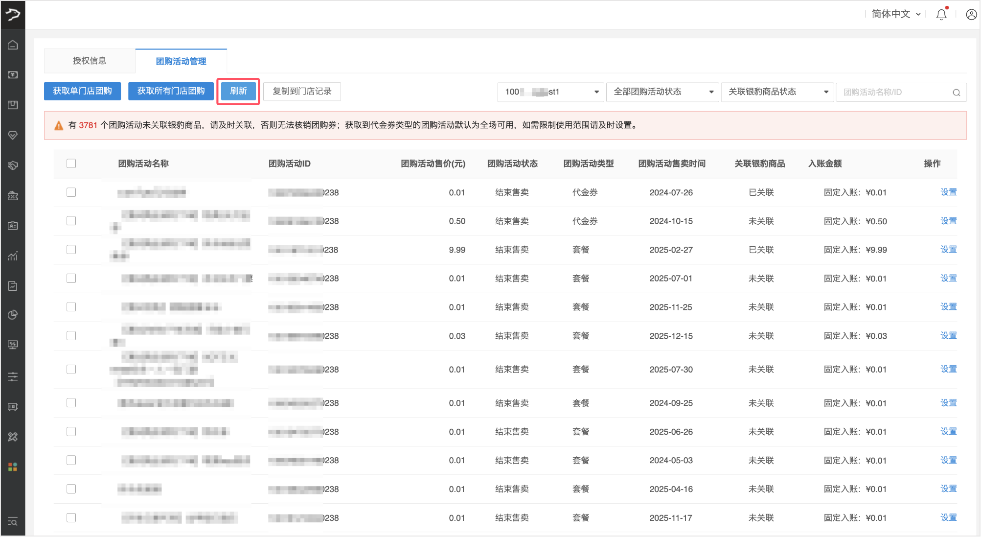 如果是总部账号需要获取更新所有授权的子门店的团购活动,点击【获取所有门店团购】。