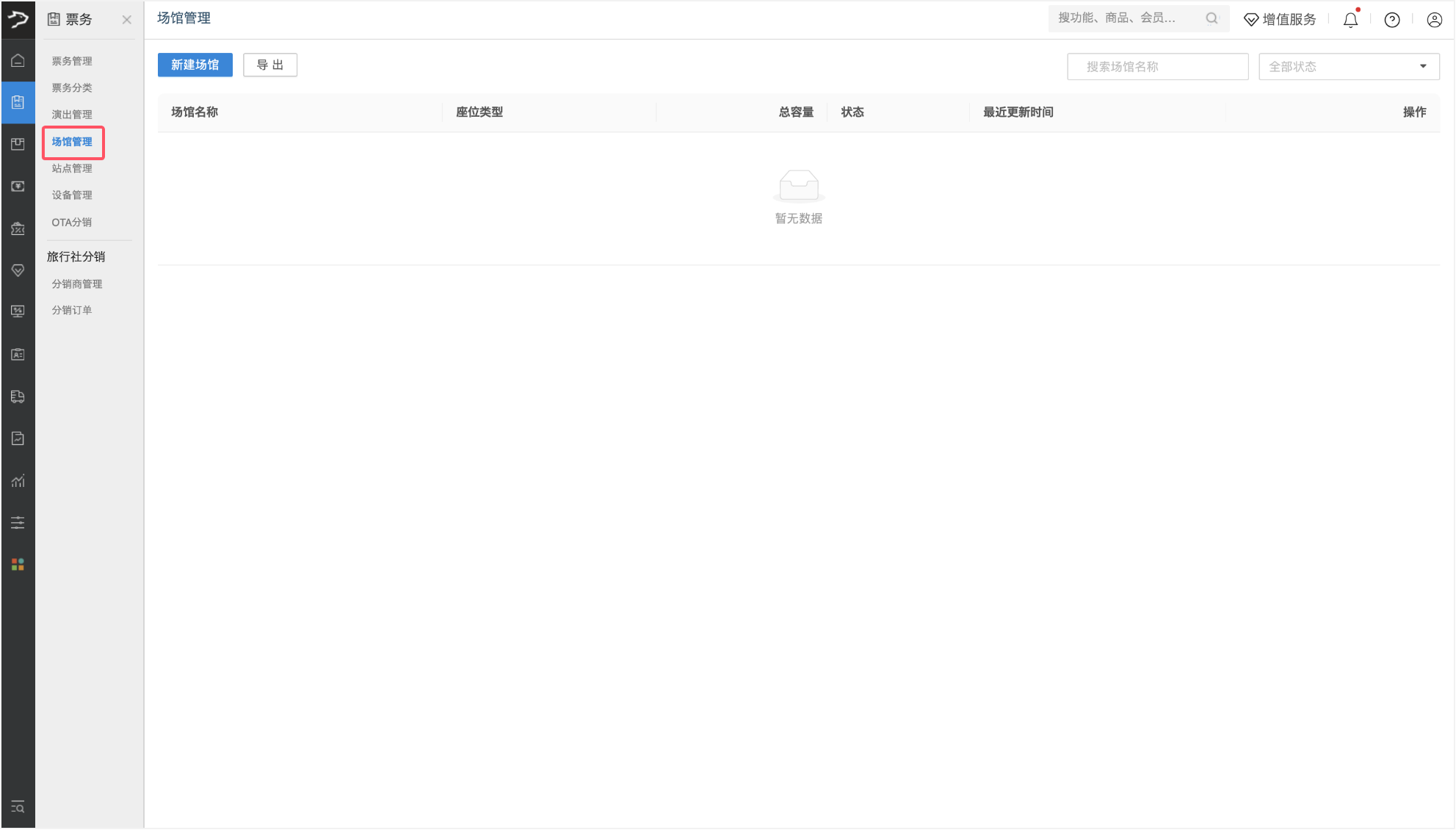 场馆管理是剧场系统中用于管理所有演出场地的核心模块,管理员或运营人员可在此进行场馆的创建、查询、导出等操作。