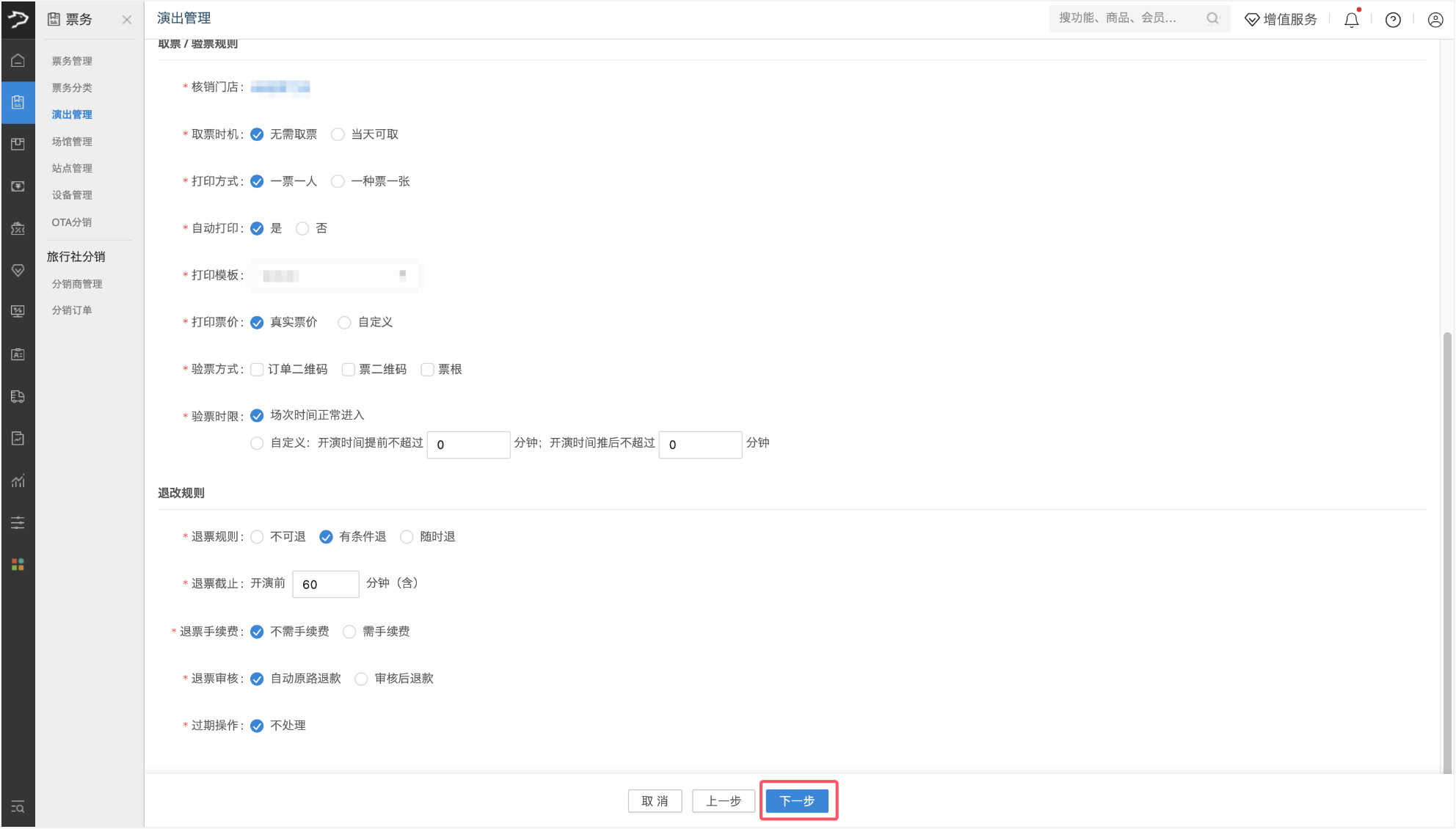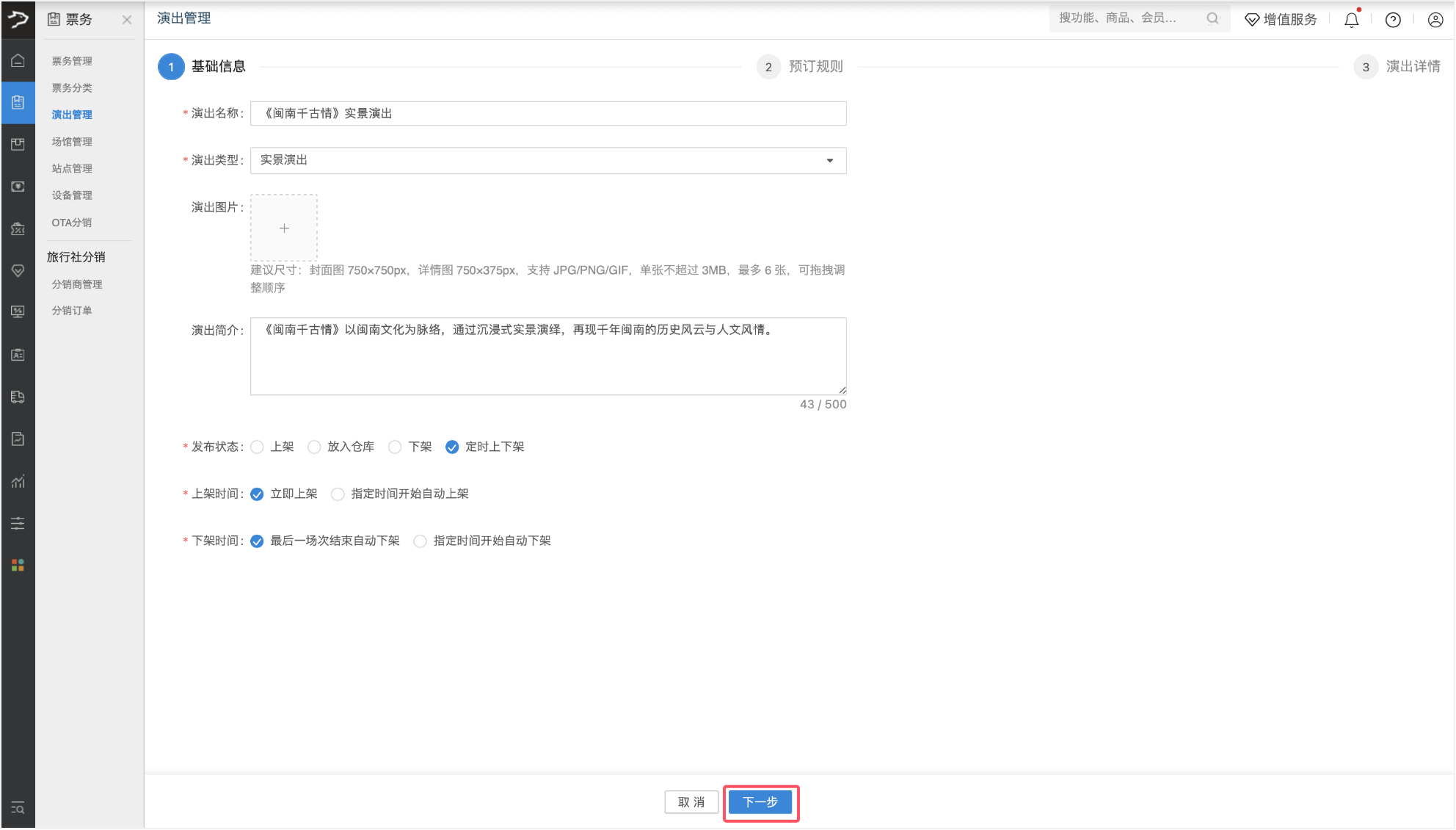 配置完成后,点击【下一步】,进入演出详情配置环节。