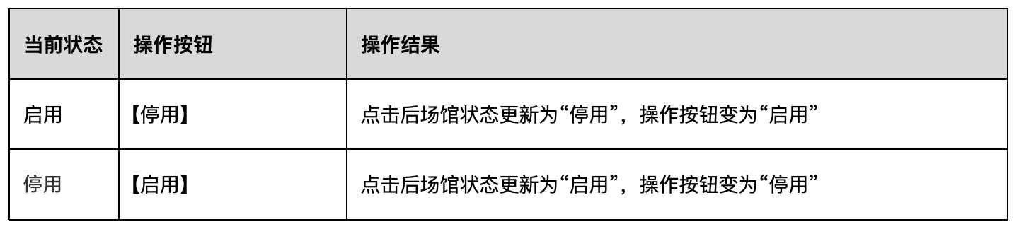 按状态筛选:点击状态下拉框,选择 “启用” 或 “停用”,即可筛选出对应状态的场馆。