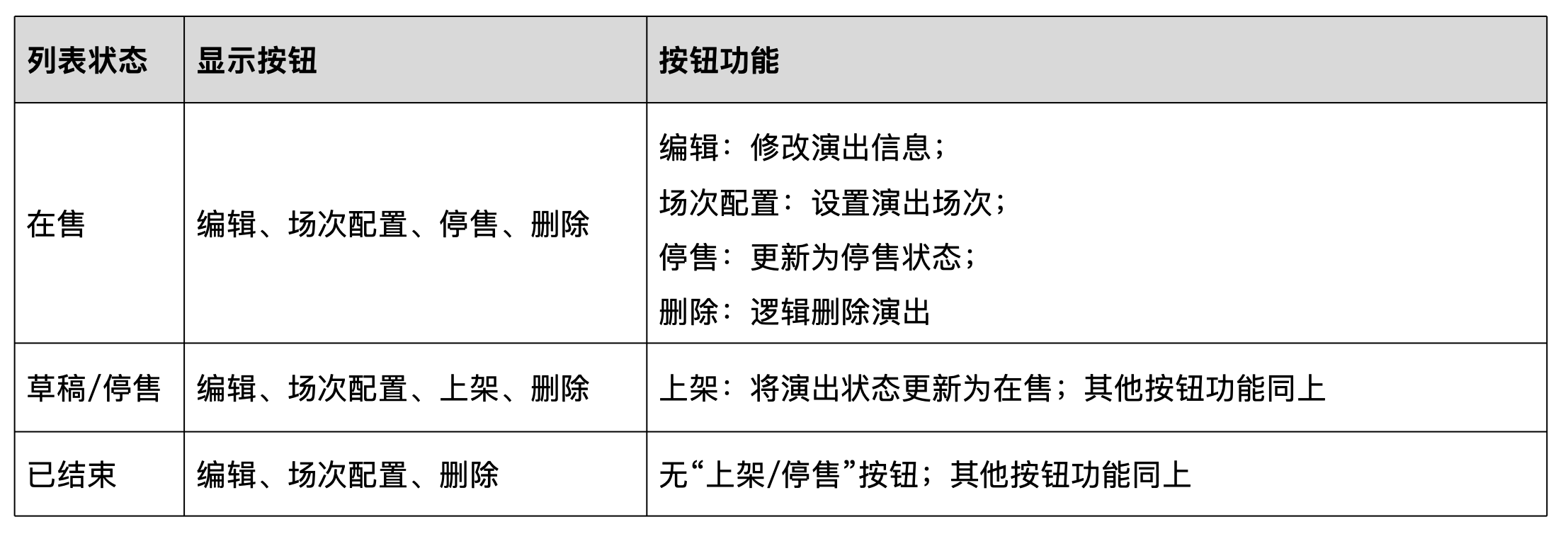 - 演出管理:支持演出创建、场次配置等操作
