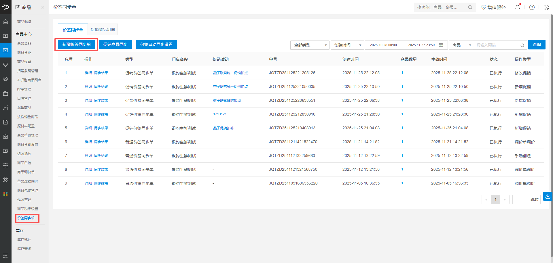 调价单需要开启同步价签,调价单生效时,系统自动进行同步