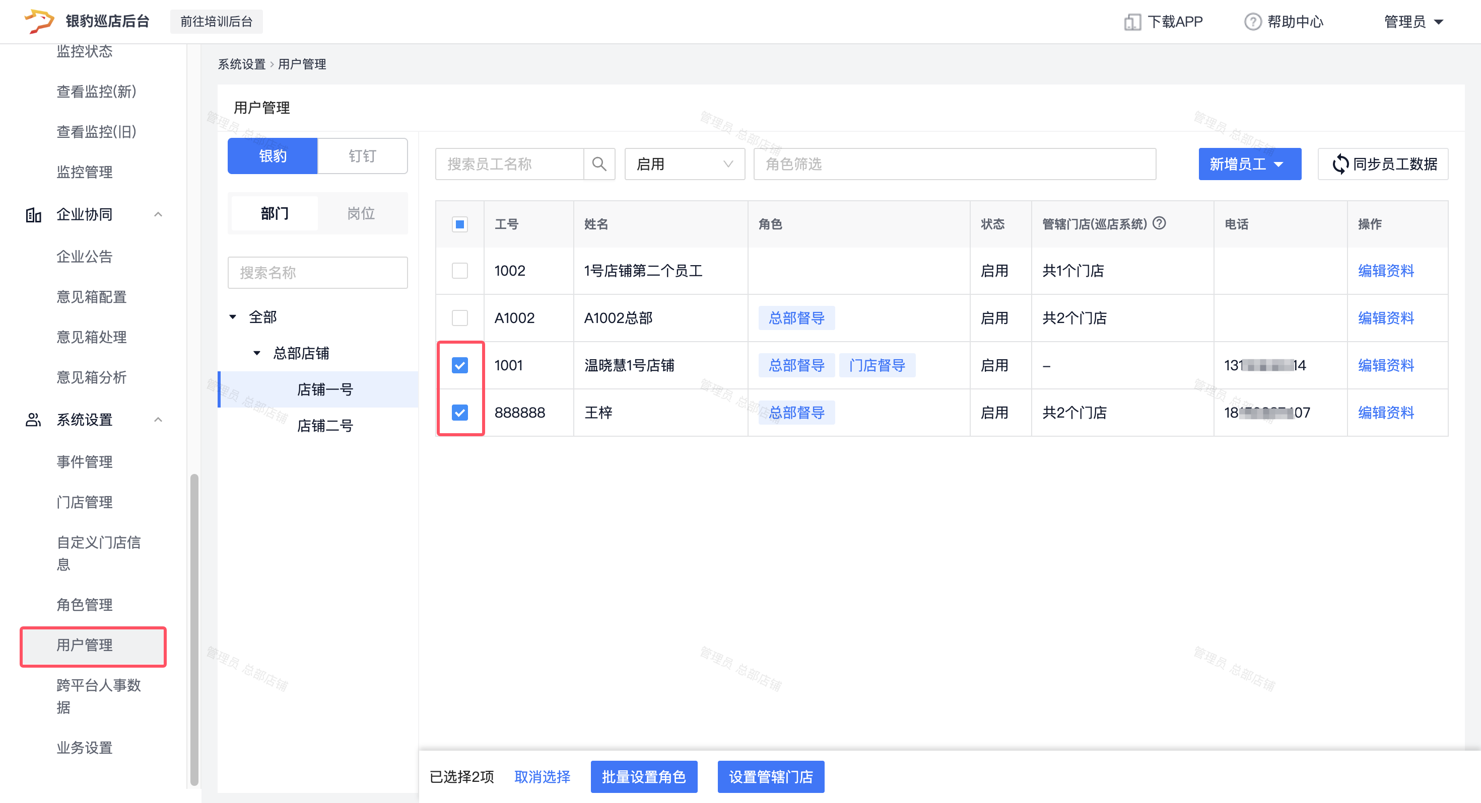 为门店员工分配角色,使其拥有相应的系统使用权限。