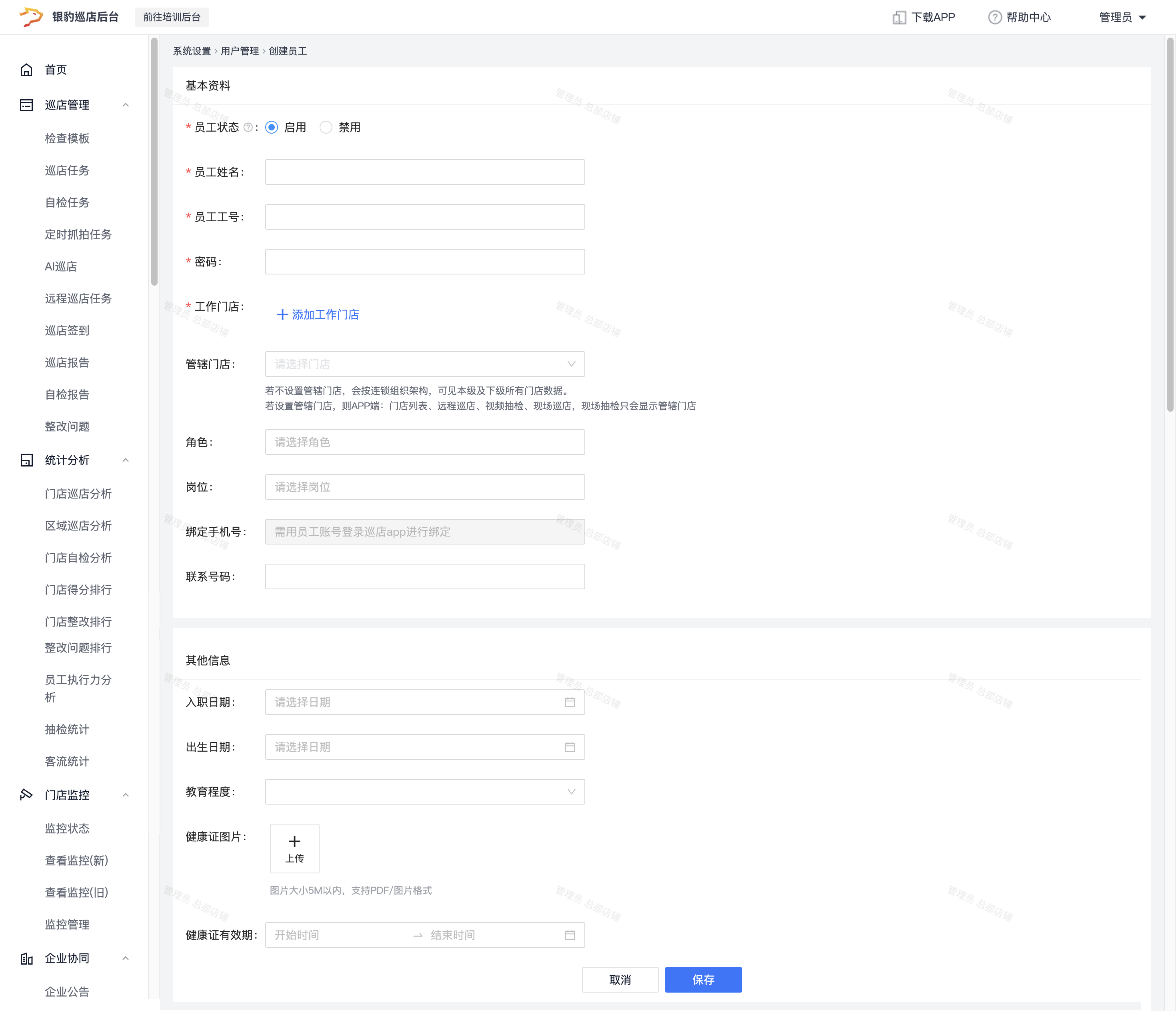 方式 1:在巡店系统新增(仅在巡店系统新增员工)