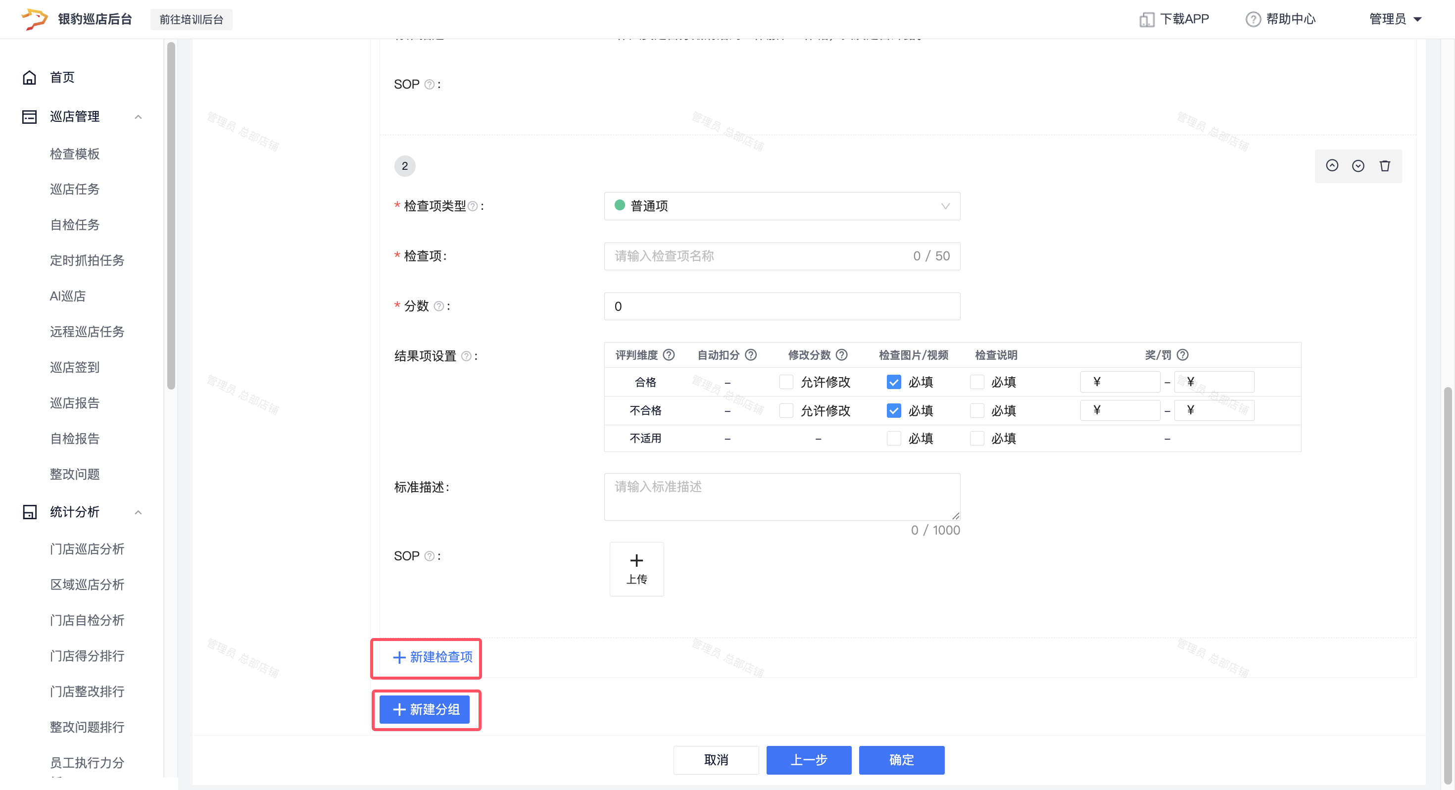 • 分数设置:输入检查项分数值,分数支持整数或一位小数点