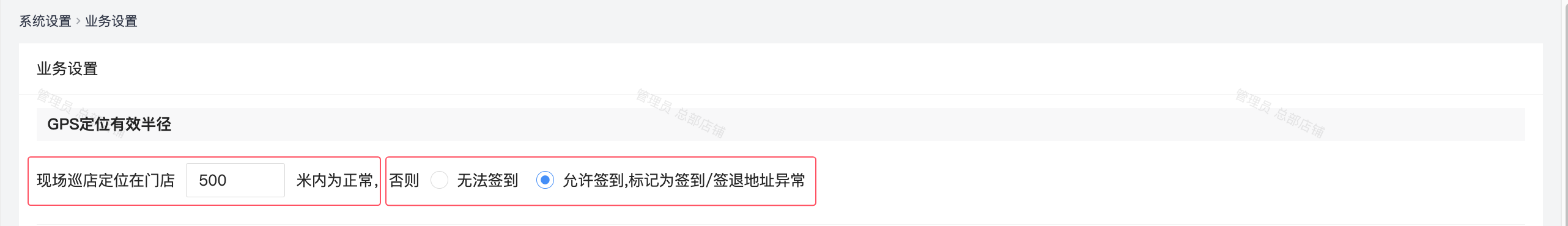 设置巡店签到定位的有效半径及签到方式,超出有效半径将无法签到或允许签到,标记为异常。