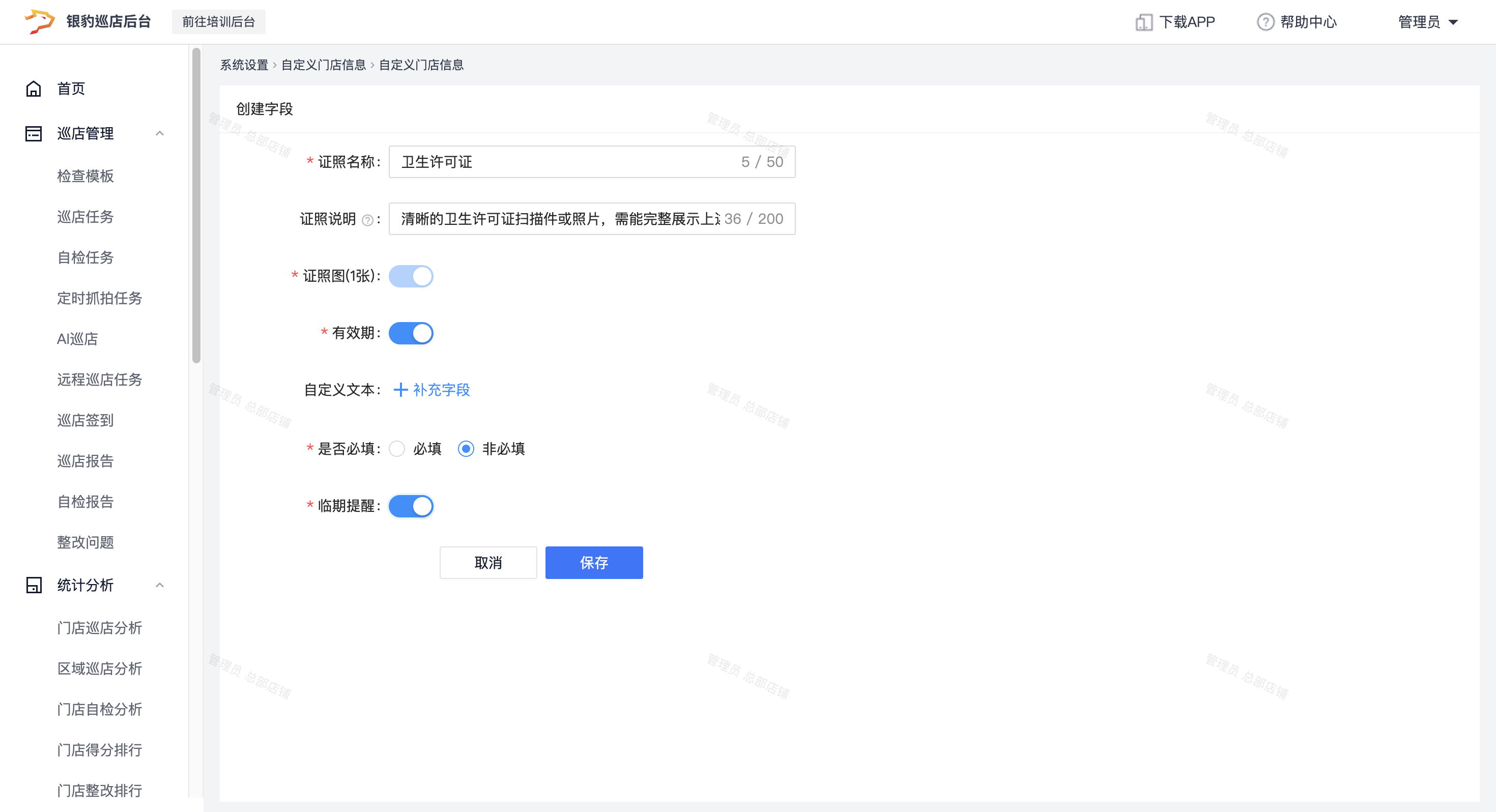 • 巡店亮点:可设置 必填 / 非必填 / 不显示