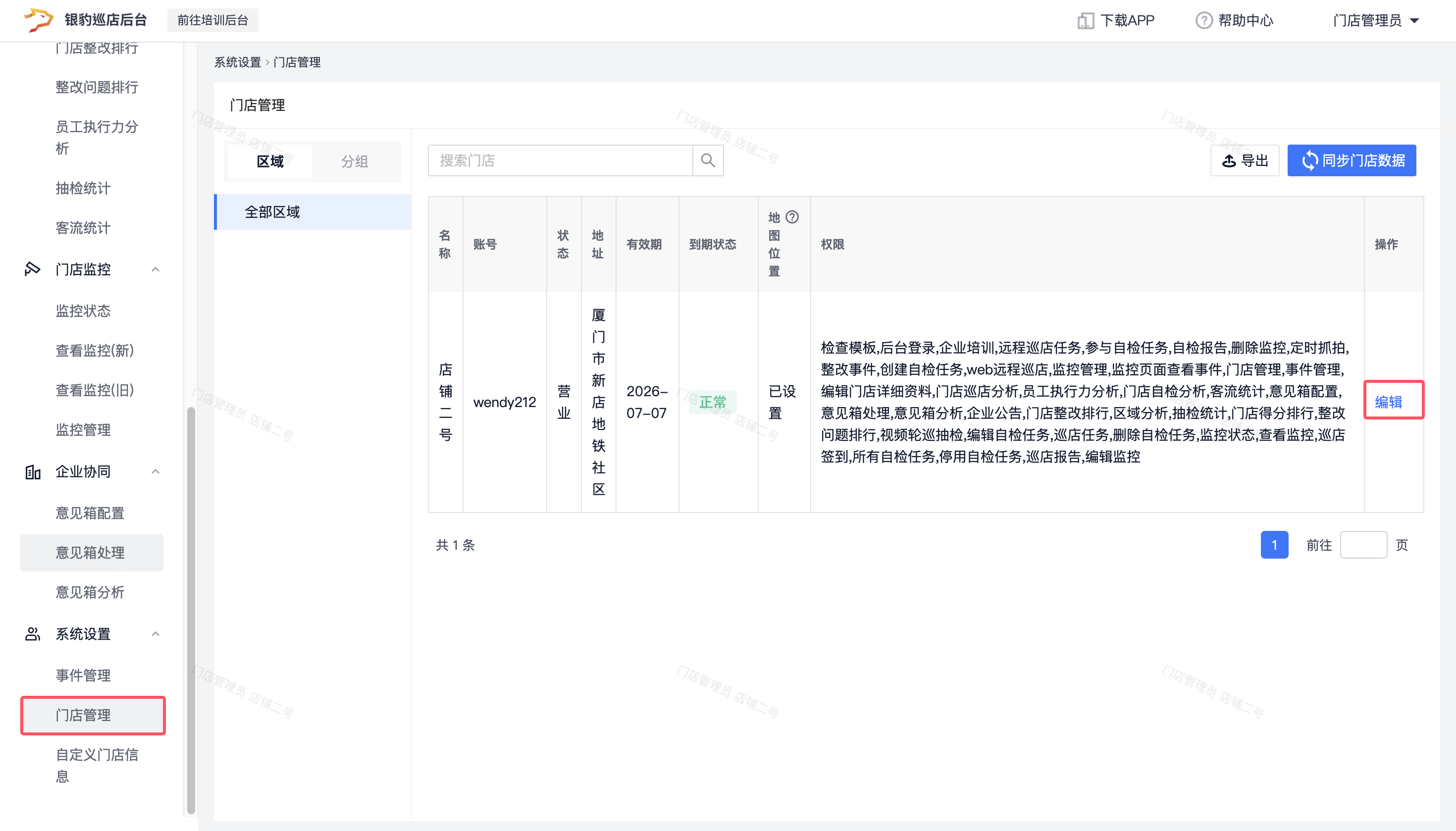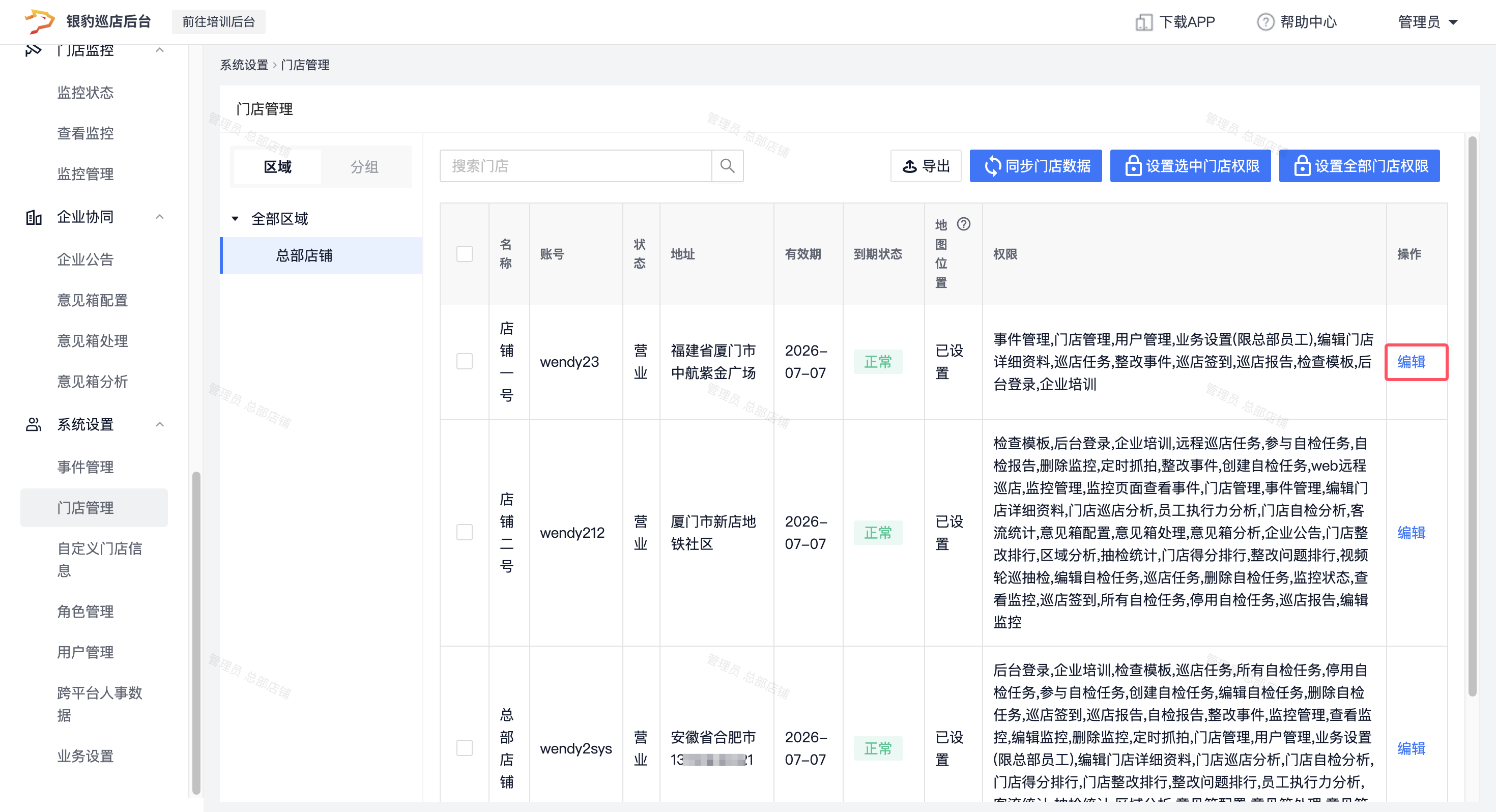 ①此功能入口对总部账号全部开放,总部员工可以配置此页面权限