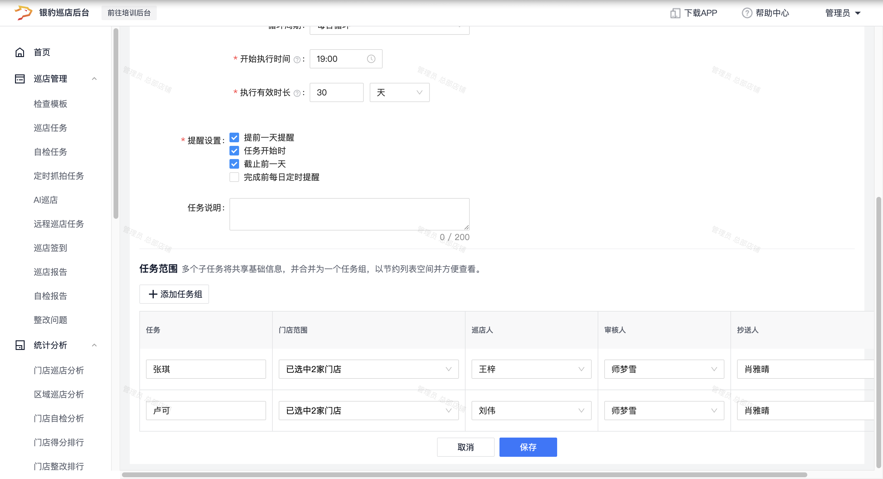 进入【系统设置】-【业务设置】,可完成巡店相关基础规则配置,具体如下: