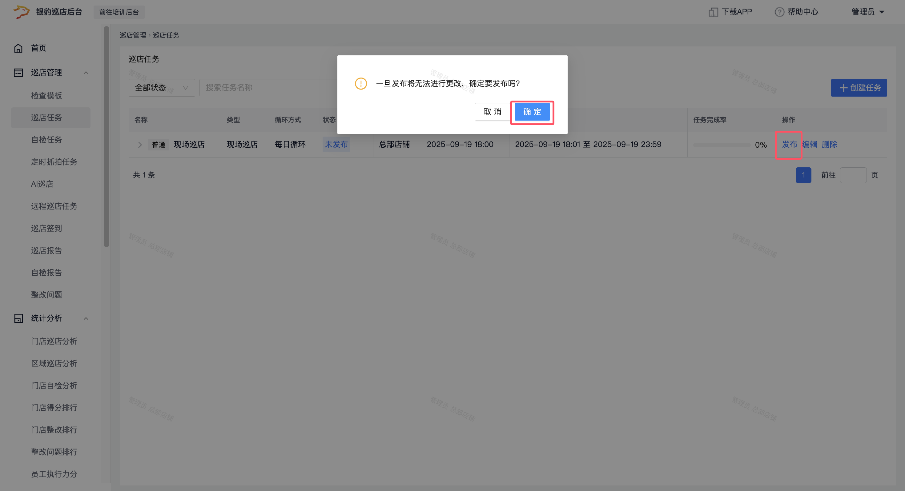 远程巡店任务不仅在移动APP端操作,也可在巡店后台执行远程巡店任务操作路径:【远程巡店任务创建/下发】【登入门店账号】【远程巡店】