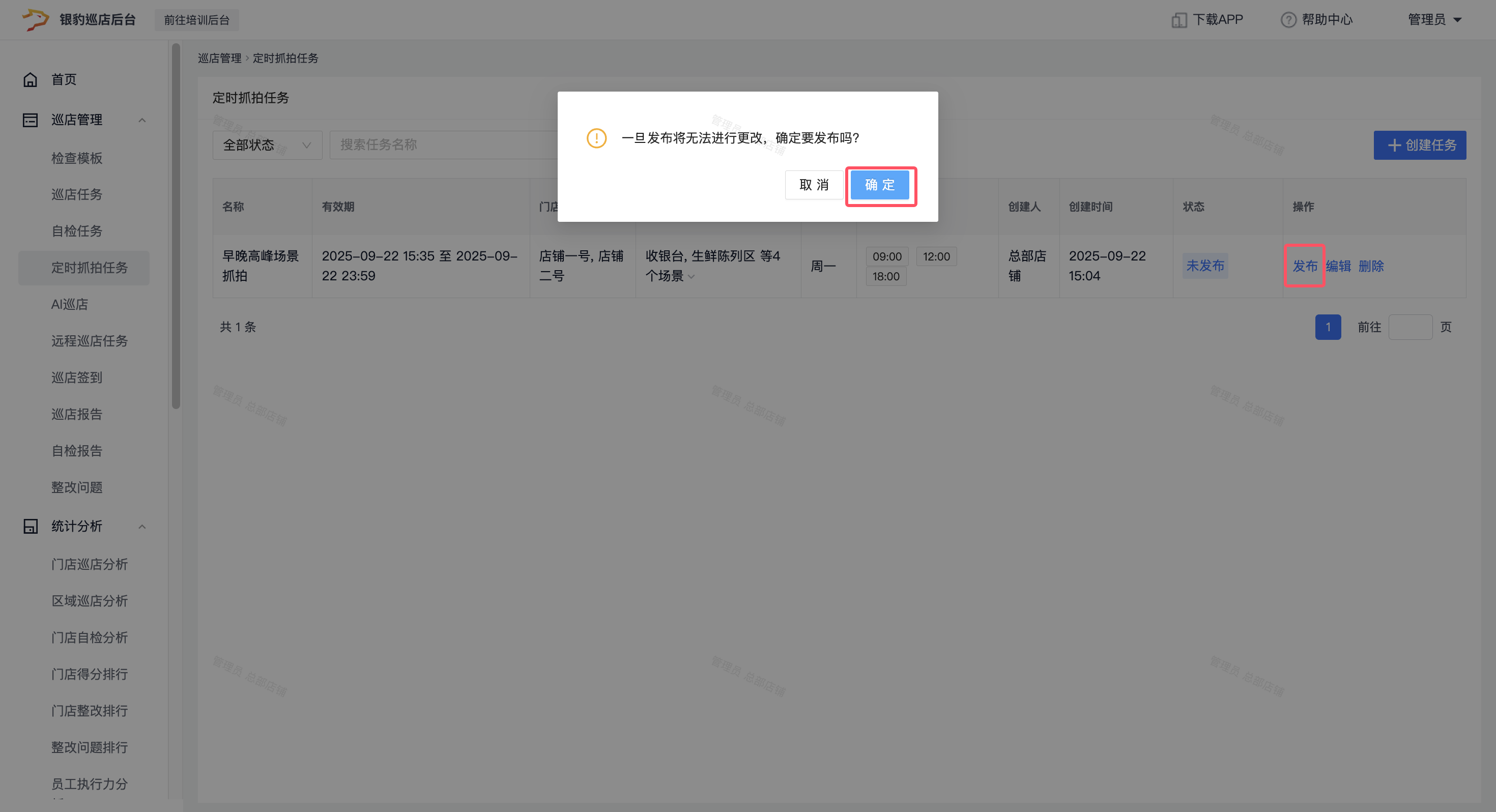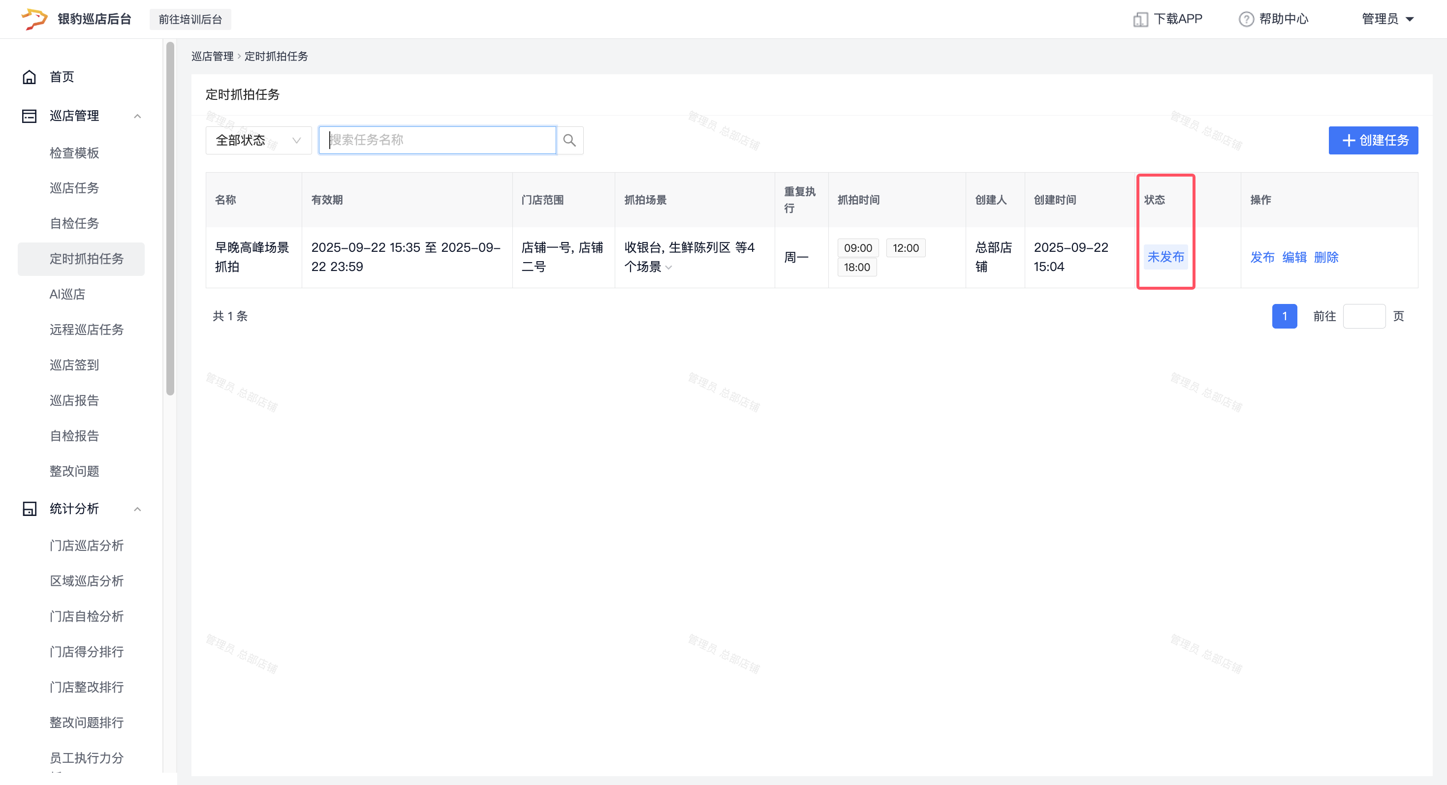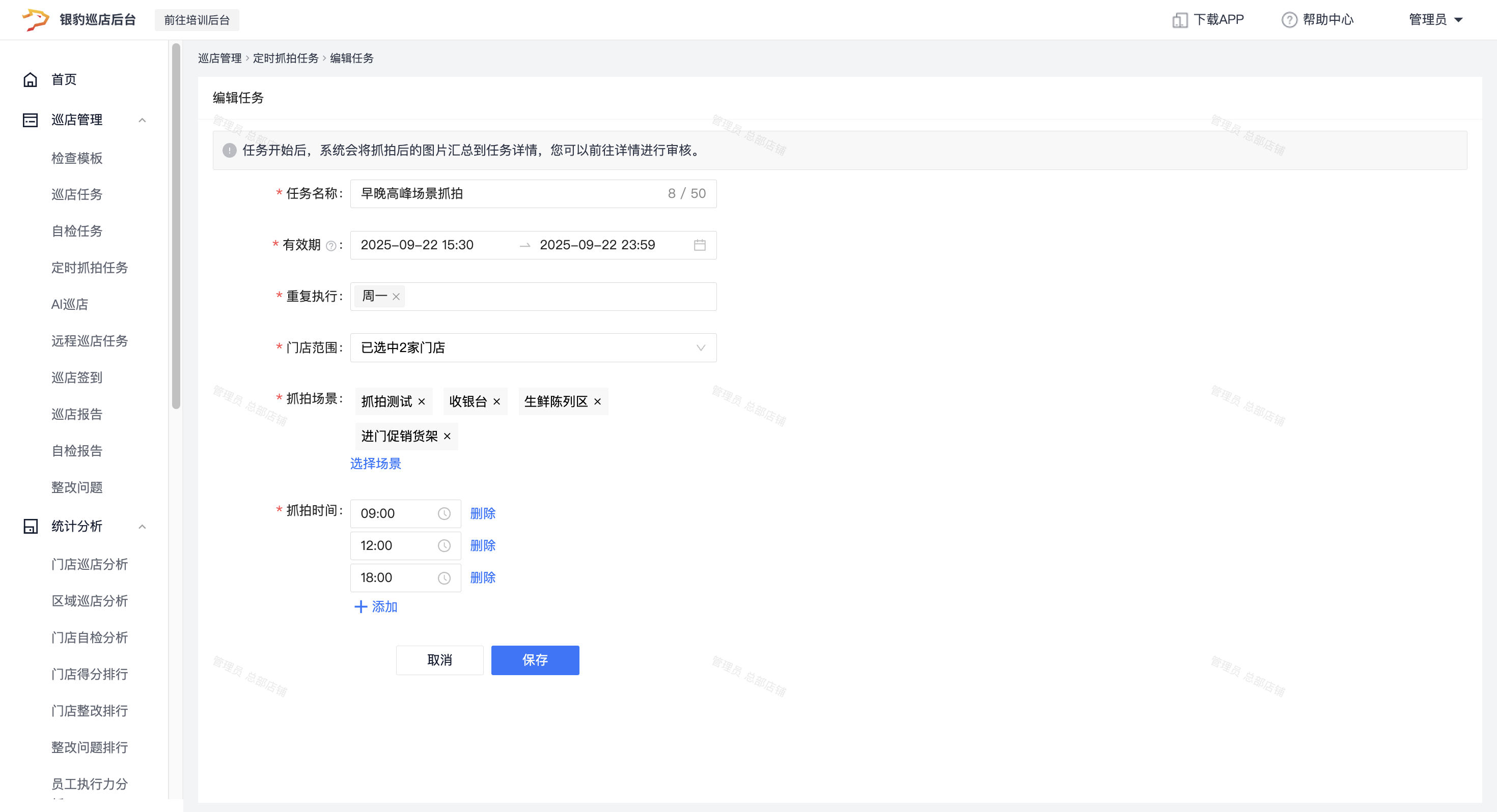 - 任务视频巡店:支持创建、分配任务,实现流程化与可追溯
