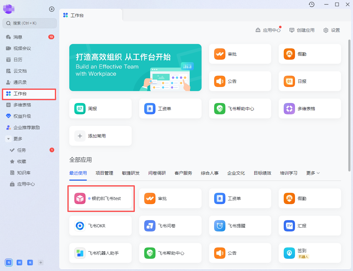 注意:此步骤直接在企微应用里操作,无需通过浏览器打开BI后台