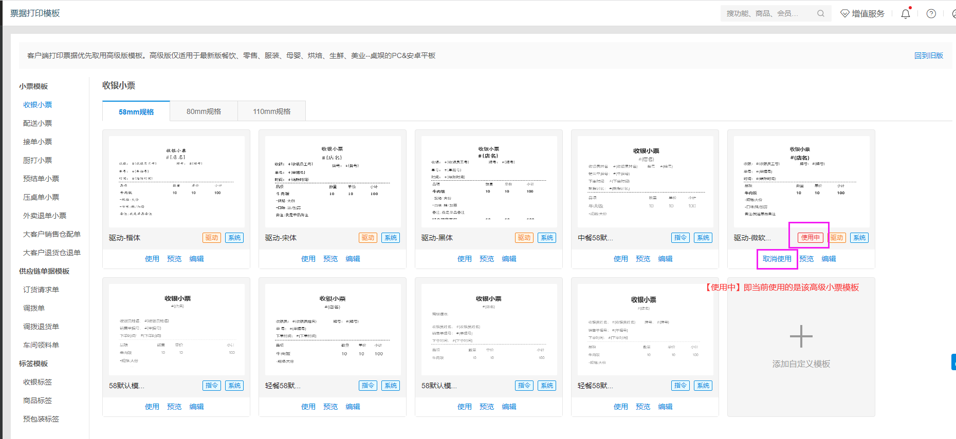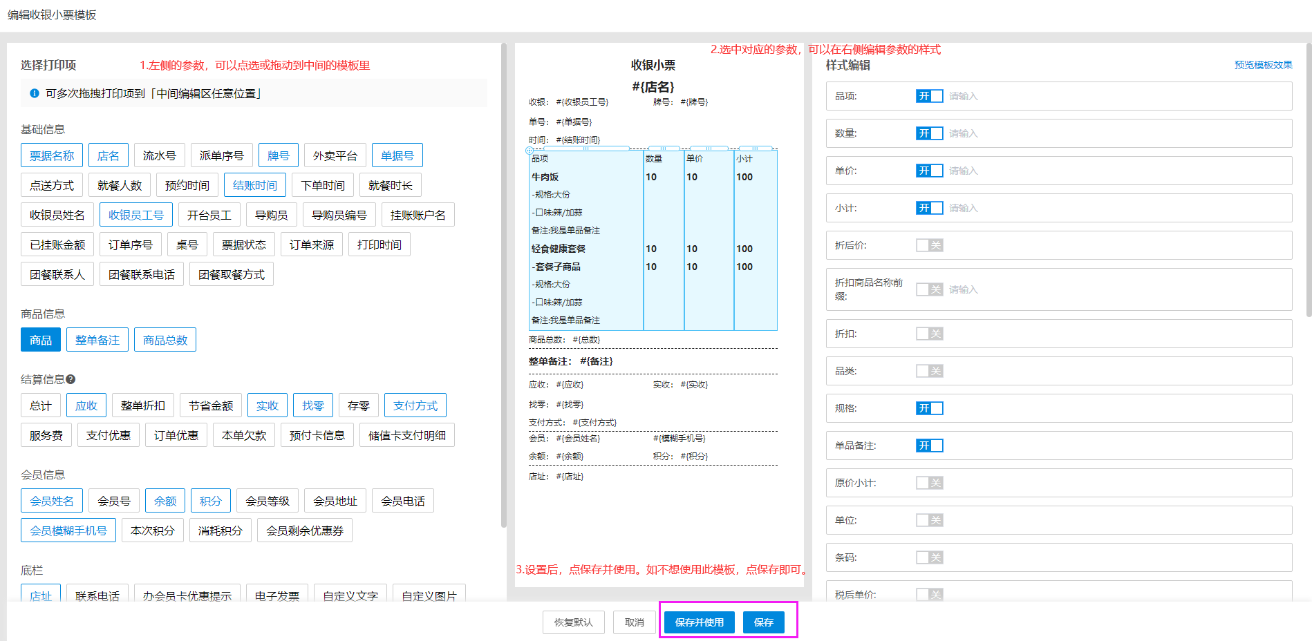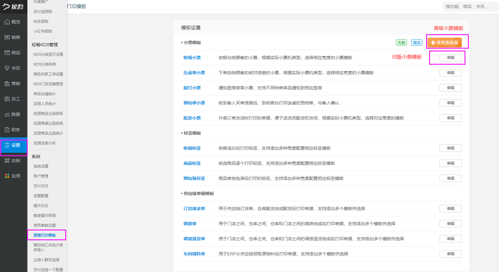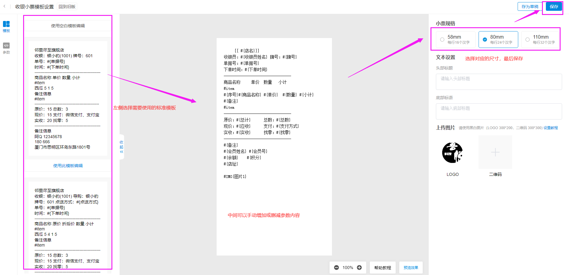 银豹新版收银小票模板设置视频:https://school.pospal.cn/#/course/details/510