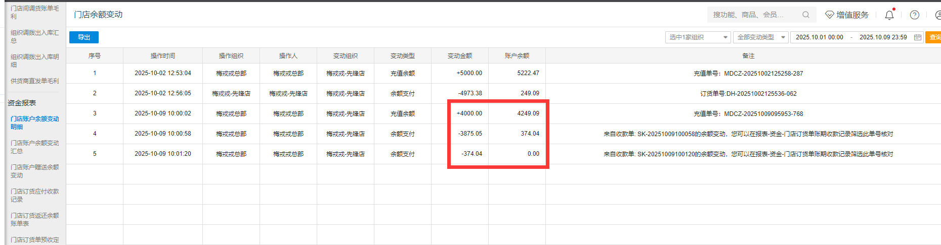 供应链如何查看门店余额变动明细呢?