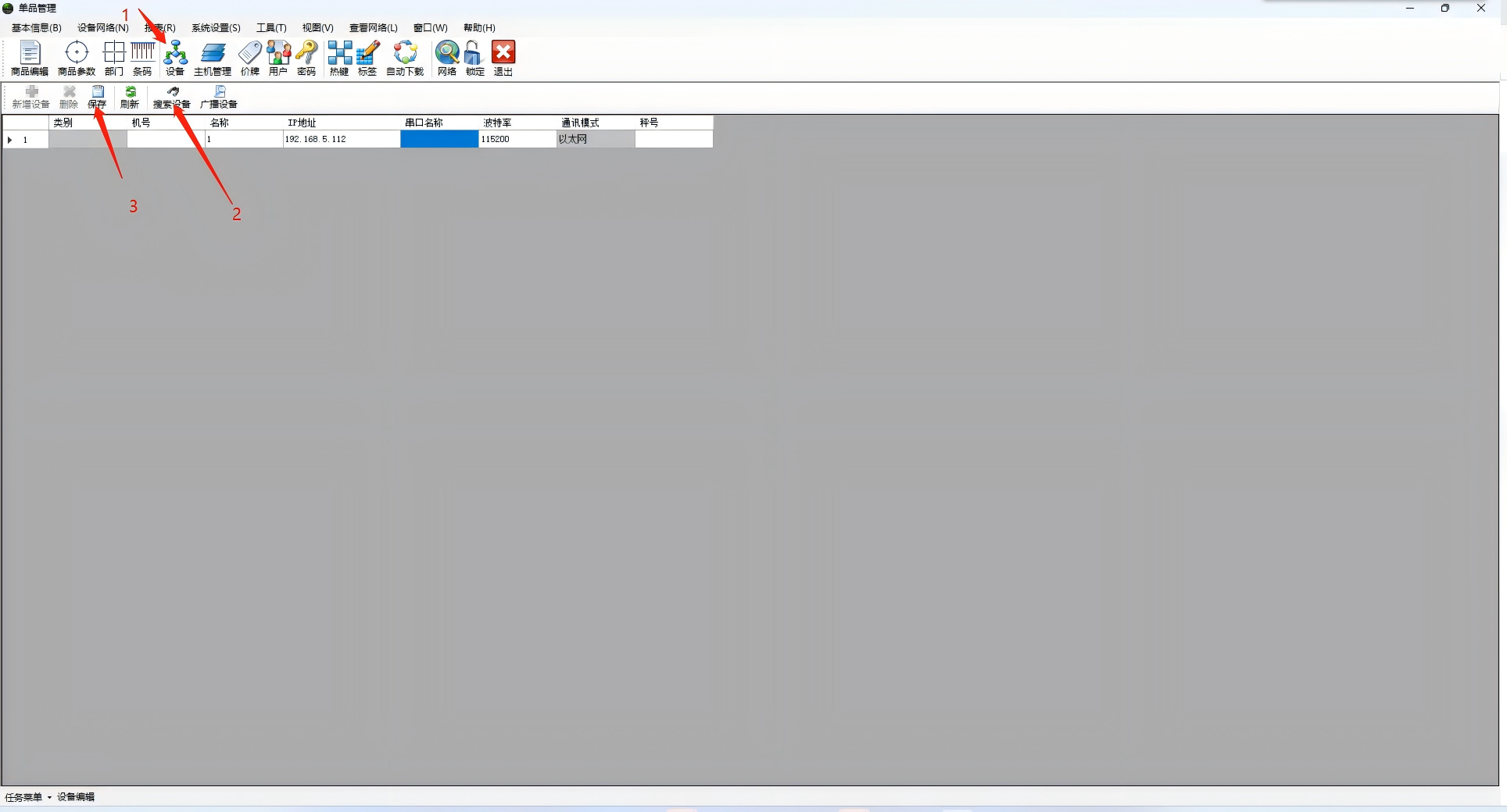 1、安装上位机后运行直接登录,点击设备,操作搜索后保存